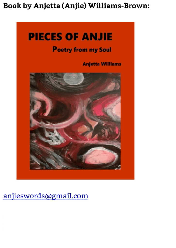 Anjetta (Anjie) Williams-Brown is a retiree from Tennessee State University (TSU) after serving as Business Coordinator for 22 years. She self-published her first poetry book entitled “Pieces of Anjie: Poetry from my Soul,» December 2022. She serves as host and moderator for several online poetry programs. She enjoys writing, crafting, performing poetry, and spending time with her grandchildren.