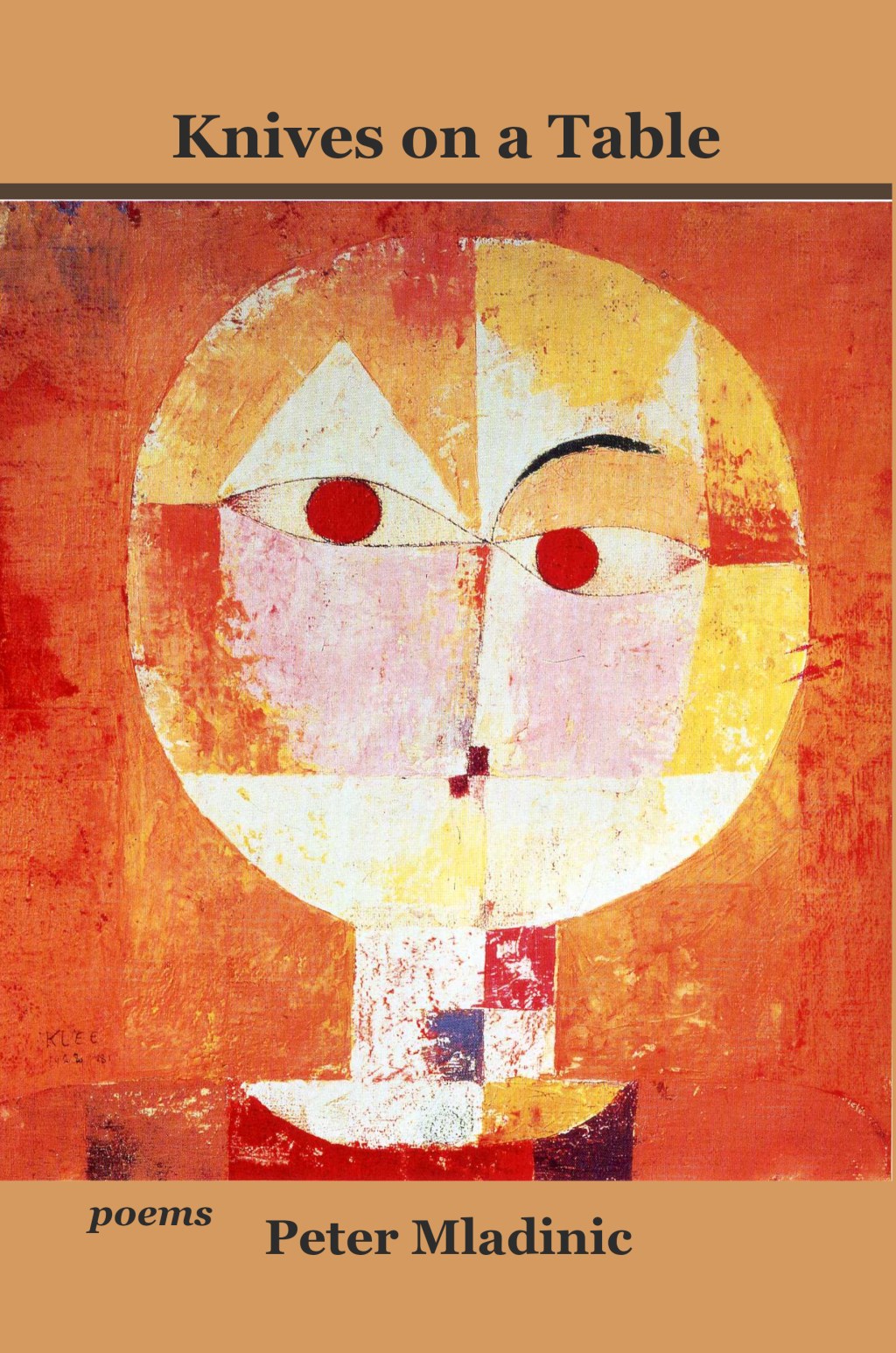 Right out of the gate, Mladinic’s textured collection of poems invites the reader to sit up and pay attention. The striking cover, Klee’s «Senecio,» sets me up for a world that’s both humorous and dead serious. I enter this world with one eyebrow raised, a little off-kilter and alert to any danger, yet warm like the oranges, reds, and yellows of the cover art. The title, Knives on a Table, also evokes the idea of danger, as I am left to choose whether to imagine butter knives at a formal Sunday brunch, or a series of butcher knives or Bowies ready to go to work, or anything in between. And the word knives is just about the best word ever; whenever I see it, I remember a moment from Canadian poet Roo Borson’s «Blackberries:»