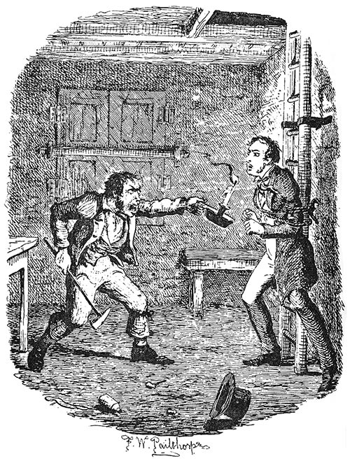 Old Orlick means murder – Picture credit: https://www.charlesdickenspage.com/illustrations-great-expectations.html. This is one of 21 etchings by Frederick William Pailthorpe (1838-1914) are from the Robson & Kerslake edition from 1885.