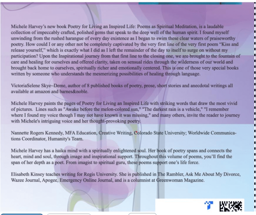 Featuring “Poetry for Living an Inspired Life: Poems as Spiritual Meditation” by Michele Harvey