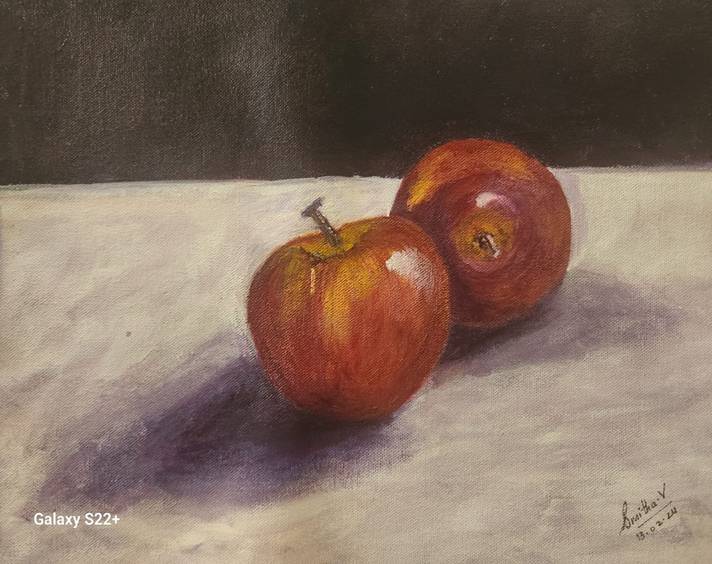 I hadn’t painted for three months because of all the travelling and also because I have a lot of starting trouble once I stop. So, I decided to begin with something simple. I liked how the apples turned out.
