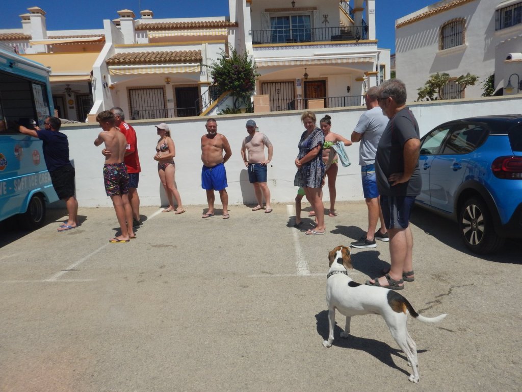 In Spain, everyone is excited when the ice cream truck shows up. I know Dot is not a person, but she thinks she is, and waits patiently for her turn.