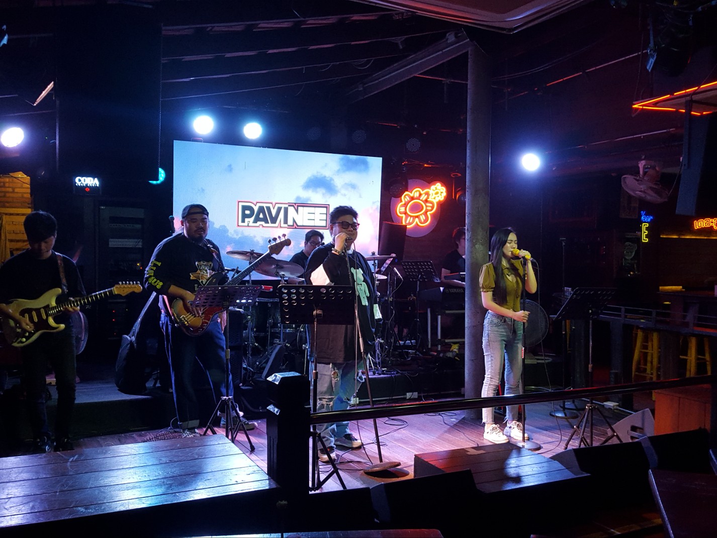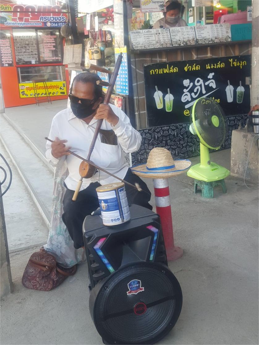 The following two pictures are of people playing instruments in Thailand. One is of a man playing a traditional Thai instrument at a roadside market. The other is of a modern band playing music at a restaurant. It was interesting to see the old and the new while I was there.