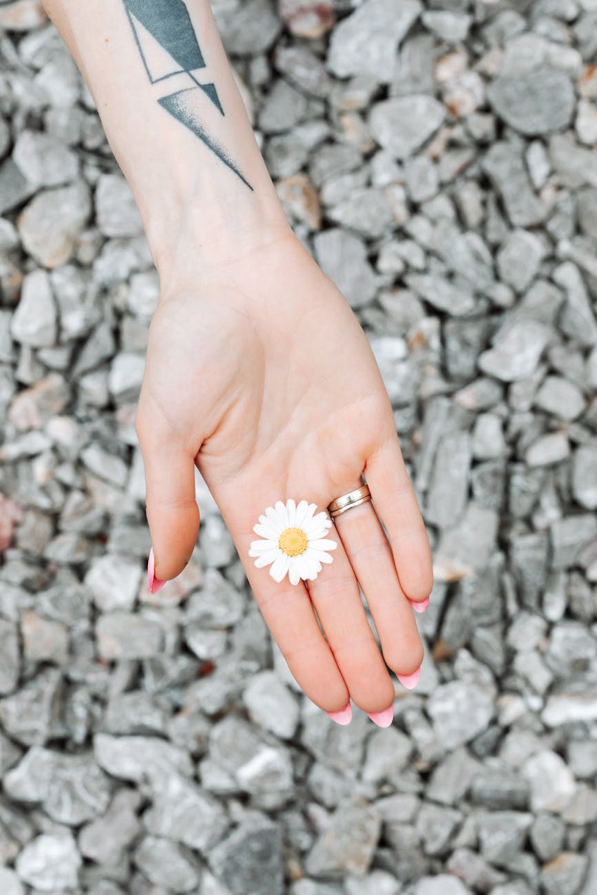 Her burnished silver daisy ring was