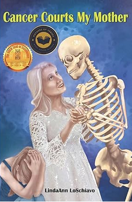 The book’s title Cancer Courts My Mother —LindaAnn LoSchiavo— suggests an extended metaphor. The tenor, cancer, is a suitor. A suitor is defined as a man who courts a woman. Although the title suggests otherwise, the woman the suitor courts is the daughter, the poet. In «Arrival» she says, «I know he’s made himself at home, the dark prince …conveying her into his sunless realm.» Yes, death is conveying the mother but it’s daughter who knows. And she is the one being courted, the one who hears the dark prince’s seductive whispers, the one for whom «terminal illness / twirls out of the speech of men.» At the end of «Tick Tick» she says, «Cancer, biding his time, taunts me.» In «Early Visit from the Grim Reaper,» «His baritone commanded me to GO!» In the «Bartering with Cancer,» the octave begins with «When medicine has nothing more to give / There’s only daughters and morphine…»And in the turn, the second half, she says, «I’m stunned.» In «Jaundice,» she says, «my mother wound up with him -Cancer -,» but in the realm of life, cancer courts the daughter, the maker of these poems.