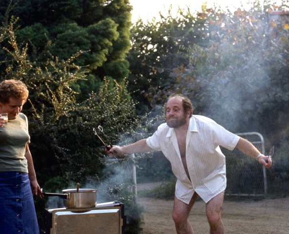 This is a photograph taken in Gite in Normandy of Derrick’s late friends, Ann and Don, tending a barbecue in September 1982.
