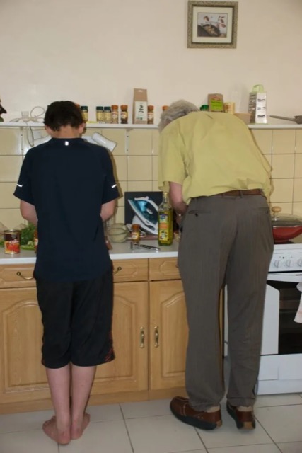 The following photographs are by Derrick Knight’s daughter-in-law, Heidi. The feature Derrick cooking curry with his grandson, Oliver, in his French house in Dordogne in May 2009.