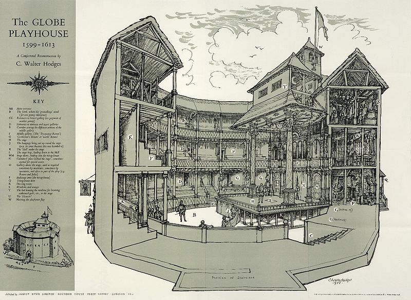 The theatre-goers included the ‘Groundlings’ (the common people who watched the play standing in the pit and paid only 1 penny – in the summer were nicknamed ‘Stinkards’ for obvious reasons), the patrons who paid a higher sum for seats in the galleries and the nobles who could even sit on the stage.