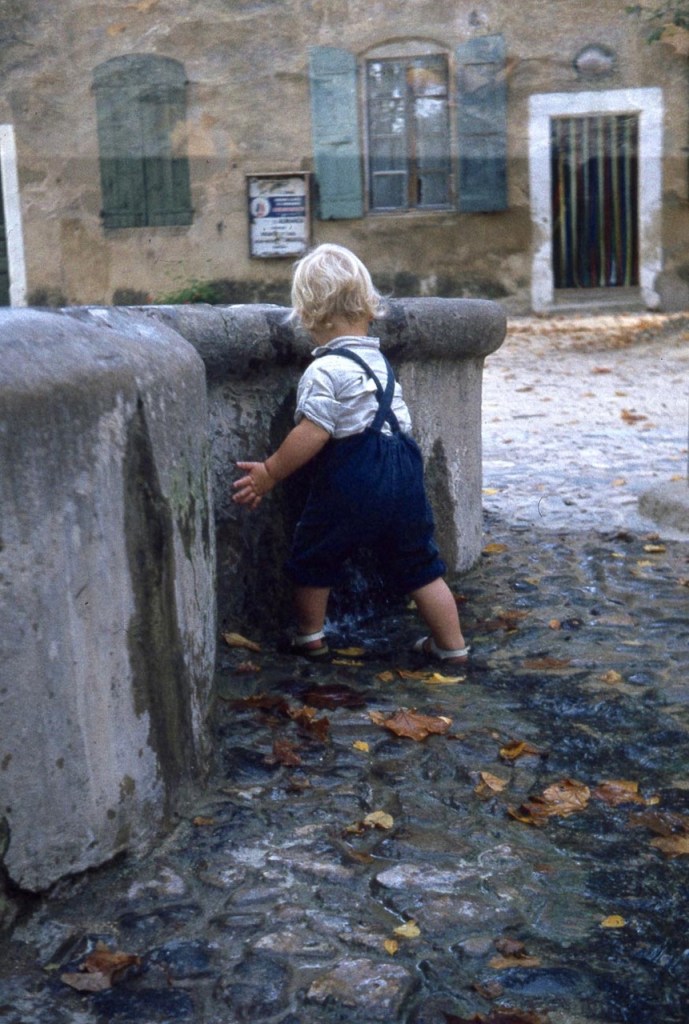 The photograph of Sam below, not yet 2 years old, was taken during a holiday in France. Sam is splashing around in the fountain in Villeneuvette.